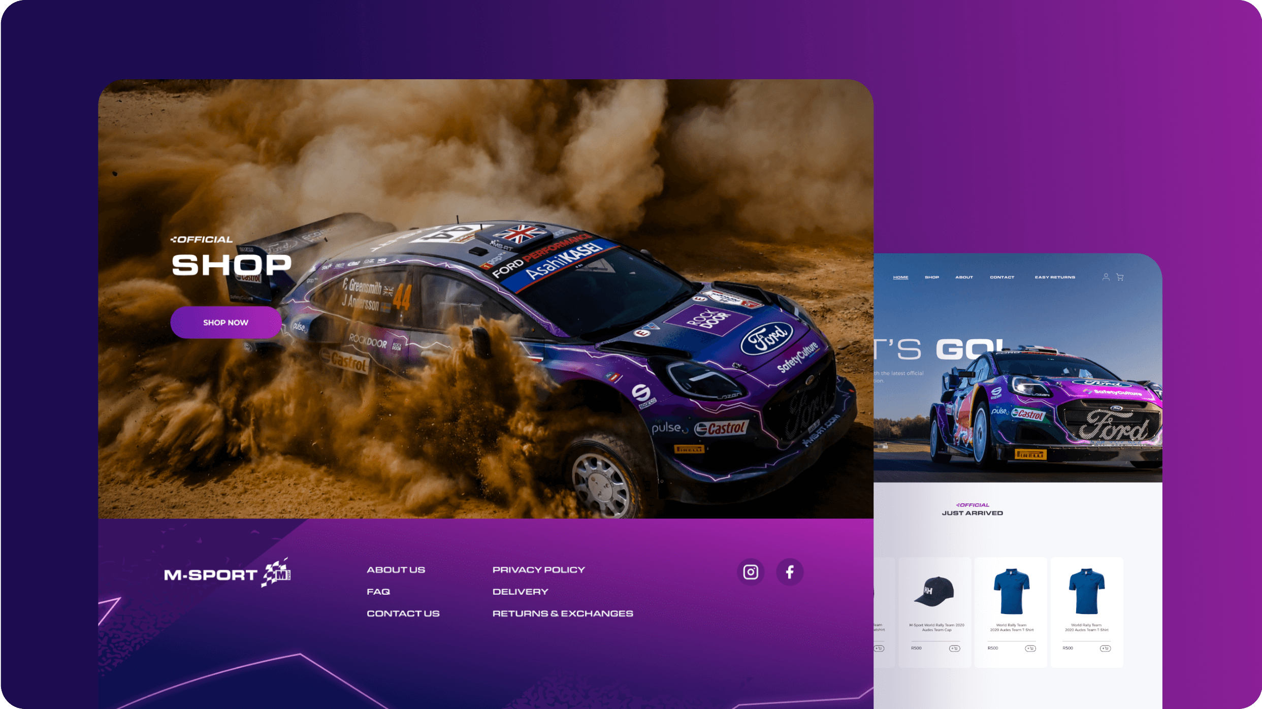 We designed a racy new e-commerce website to capture the energy behind this racy rally brand.